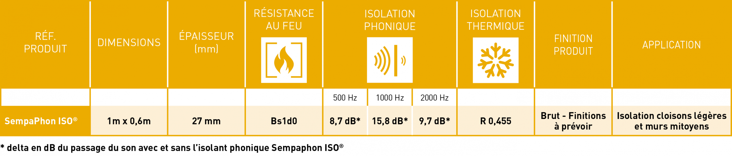Le principe physique Masse Ressort Masse (MRM) de SempaPhon ISO® produit une isolation phonique d’une efficacité exceptionnelle.
